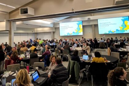 Educators and administrators from Washington state school districts gather at Microsoft’s Redmond campus for the kickoff of a two-year AI…