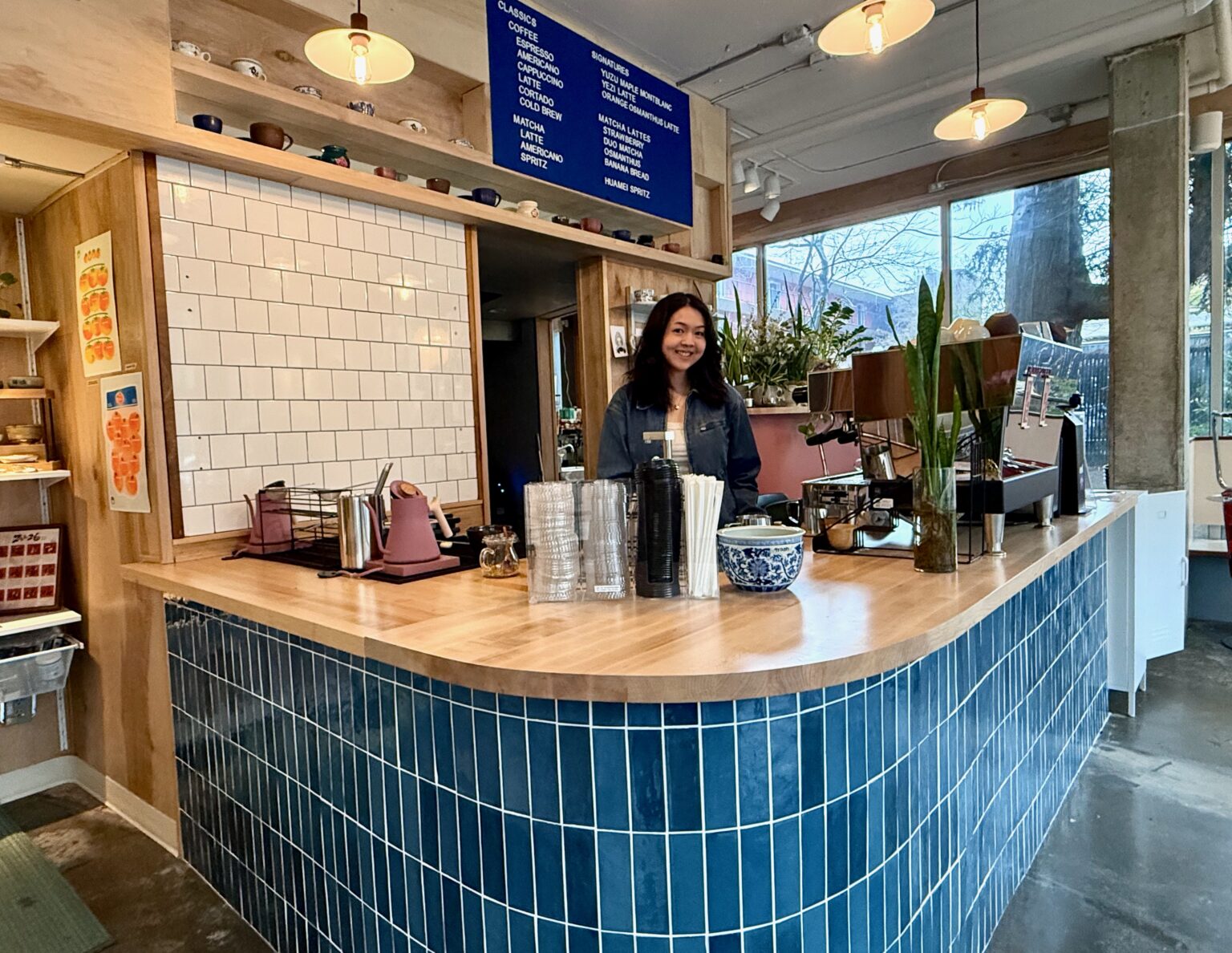 The view of Lake Washington and eastbound I-90 traffic as Sound Transit’s Crosslake Connection Link light rail line heads west…
