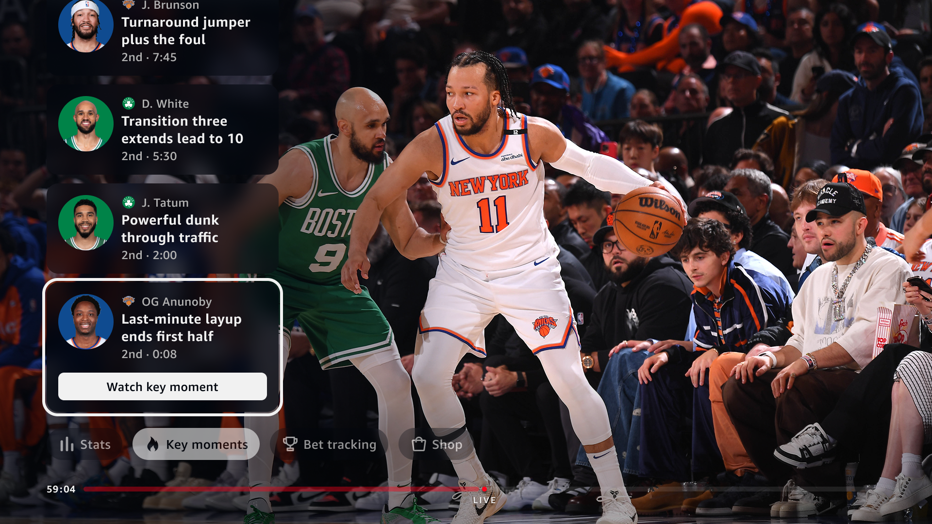 Key Moments allows fans to access the most exciting and pivotal plays throughout the game in real-time. The feature utilizes AI to curate what Amazon calls “plays that matter” — such as a big dunk or a pivotal three-pointer. At any point in the game, fans can relive or catch up on the growing collection of in-game highlights, each featuring a full description of the play.