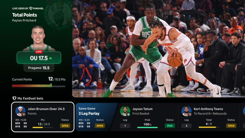 The opt-in, personalized bet tracking experience with FanDuel provides real-time integration of betting information during live game action. When a fan links their Prime Video profile to their FanDuel account, their active NBA bets will be displayed and updated on the screen, along with relevant progress and won/lost status. The feature does not offer the ability to place bets directly on Prime Video.