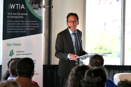 Washington Gov. Bob Ferguson speaks at Seattle AI Week last year. (GeekWire…
