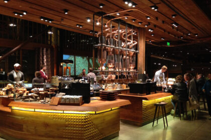 The main mixology bar at the Starbucks Reserve Roastery in Seattle. (GeekWire…
