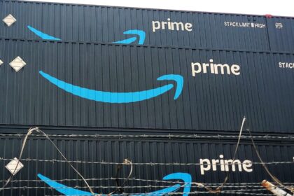 Amazon Prime shipping containers stack up at the Port of Seattle in…