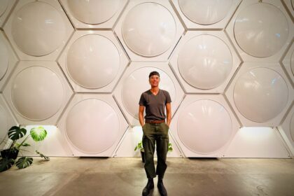 Recompose founder and CEO Katrina Spade in front of the vessels in…