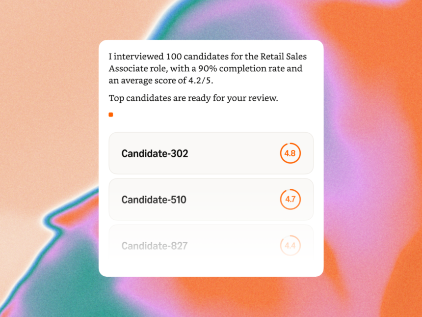 Connect Talent is aimed at high-volume hiring in industries like manufacturing, logistics, retail, and hospitality, rather than corporate recruiting. AI agents conduct voice interviews that candidates can take anytime, eliminating scheduling conflicts. The system strips names and resumes from the process; recruiters see anonymized competency scores and transcripts.
