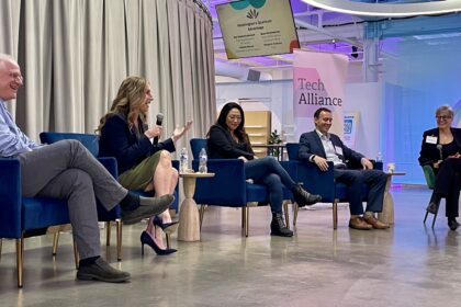 From left: University of Washington professor Charles Marcus; Rep. Stephanie Barnard; IonQ CMO Margaret Arakawa; Beau Perschbacher, policy advisor for…