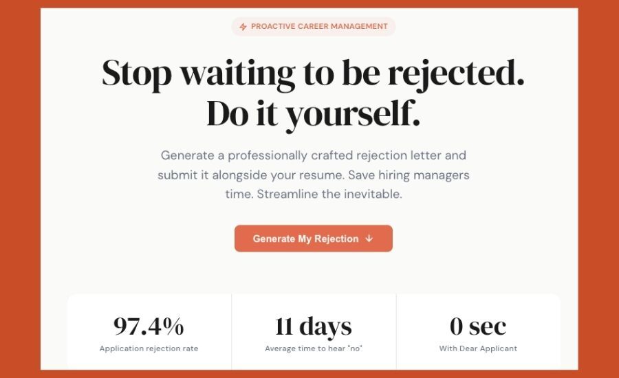 The Dear Applicant generator arrived shortly after, born from a comment on Threads suggesting the logical next step: a rejection letter that arrives before you’ve even applied. “Imagine all the efficiency gains,” the commenter wrote. Pirillo obliged.