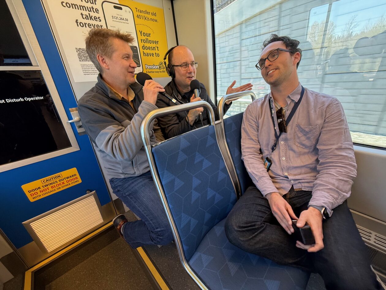 This week on the GeekWire Podcast: we take the show on the road — or rather, on the rails — recording on Sound Transit’s 2 Line as we ride the world’s first light rail on a floating bridge from Seattle’s Northgate neighborhood to Microsoft’s campus in Redmond.