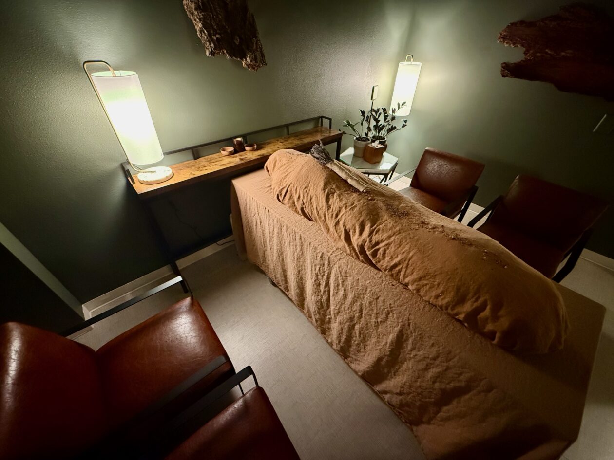 Families can gather for quiet reflection with their loved one in one room and for a larger memorial service in another. That space features a “threshold vessel,” where a person is passed through from a place where they have existed in one form to the place where they will be composted.