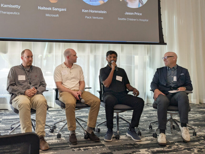 At an AI and drug discovery event at Seattle Children’s Research Institute on Tuesday, Kamisetty, Sangani and other panelists shared their thoughts on Seattle’s leadership as well as discussions of the progress and challenges in the field.