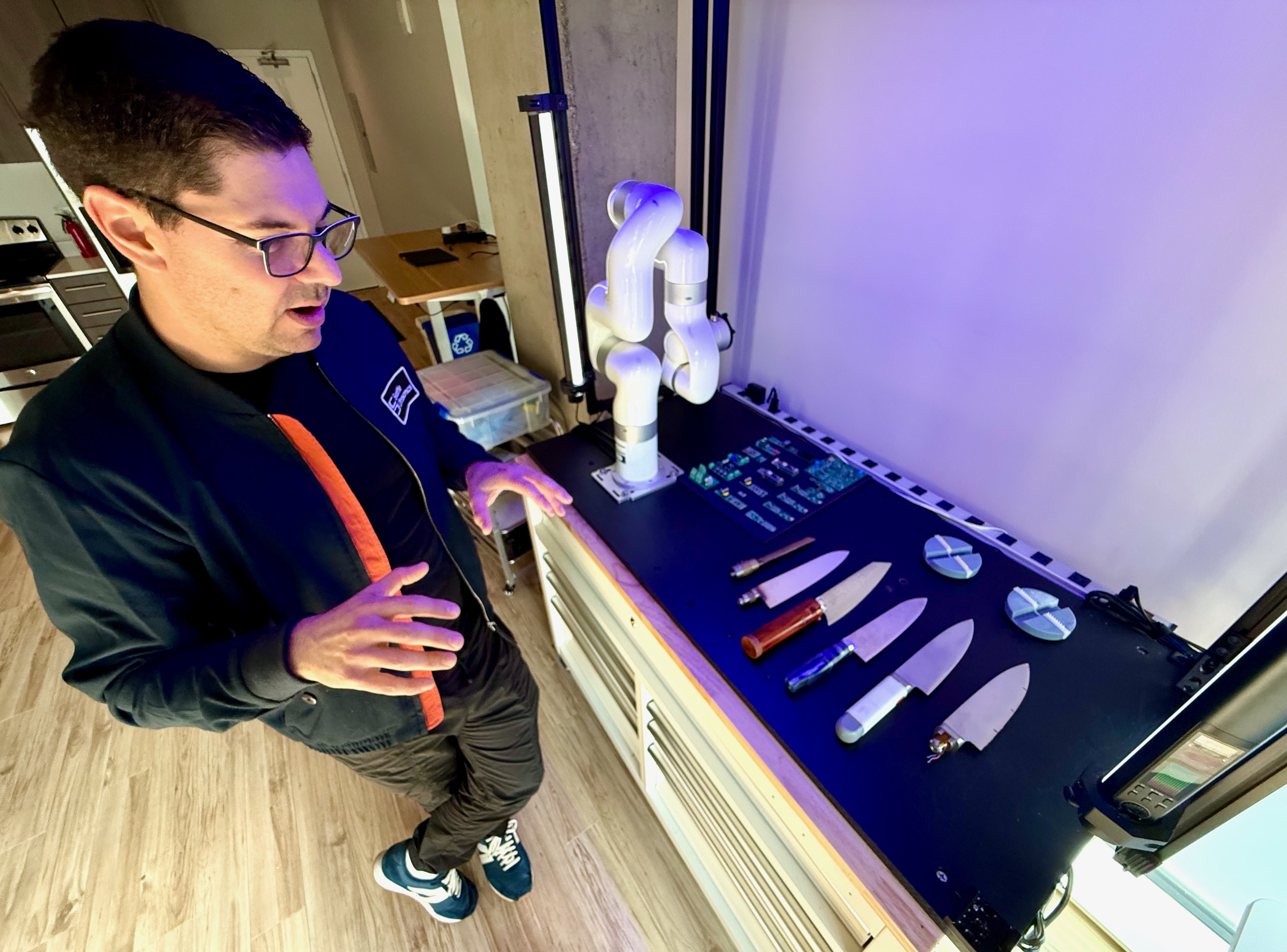 And thanks to a robotic assistant, he has the data to back up his claim that the knife does indeed cut better. Heimendinger bought 21 of the most popular chef’s knives and put them to the test with J Robot Choppenheimer, a robotic arm that repeated exact slicing motions across different foods mounted on 3D-printed holders resting on a very sensitive scale.