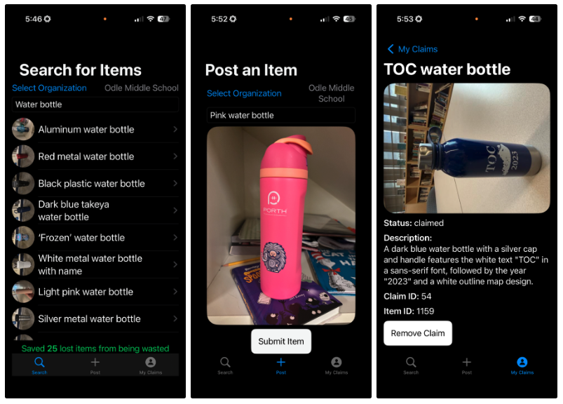 Available on iOS, FindIt works when someone in charge of a lost-and-found system, at a school for instance, takes a photo of a recovered item and uploads that photo. The image is processed by artificial intelligence, which generates a description, such as “blue water bottle with red sticker and white top.”
